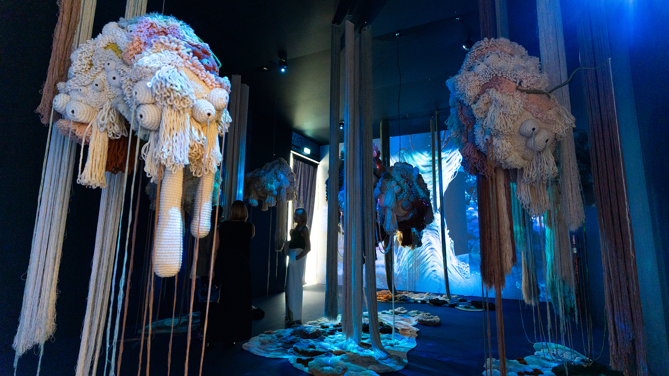 Ocean-inspired project that integrates physical art, digital environments, and immersive storytelling. “Mergulho: As Paisagens de Vanessa Barragão” converted Vanessa Barragão’s textile sculptures into a phygital installation, combining physical artifacts with digital projections and interactive spatial design. Simultaneously, for Expo 2025 Osaka, we contributed “Oceano” to the Portugal Pavilion, a site-specific live artwork that uses the pavilion’s rope structures as a medium, merging sculptural elements, live performance, and real-time digital visuals into a multi-layered ocean narrative.